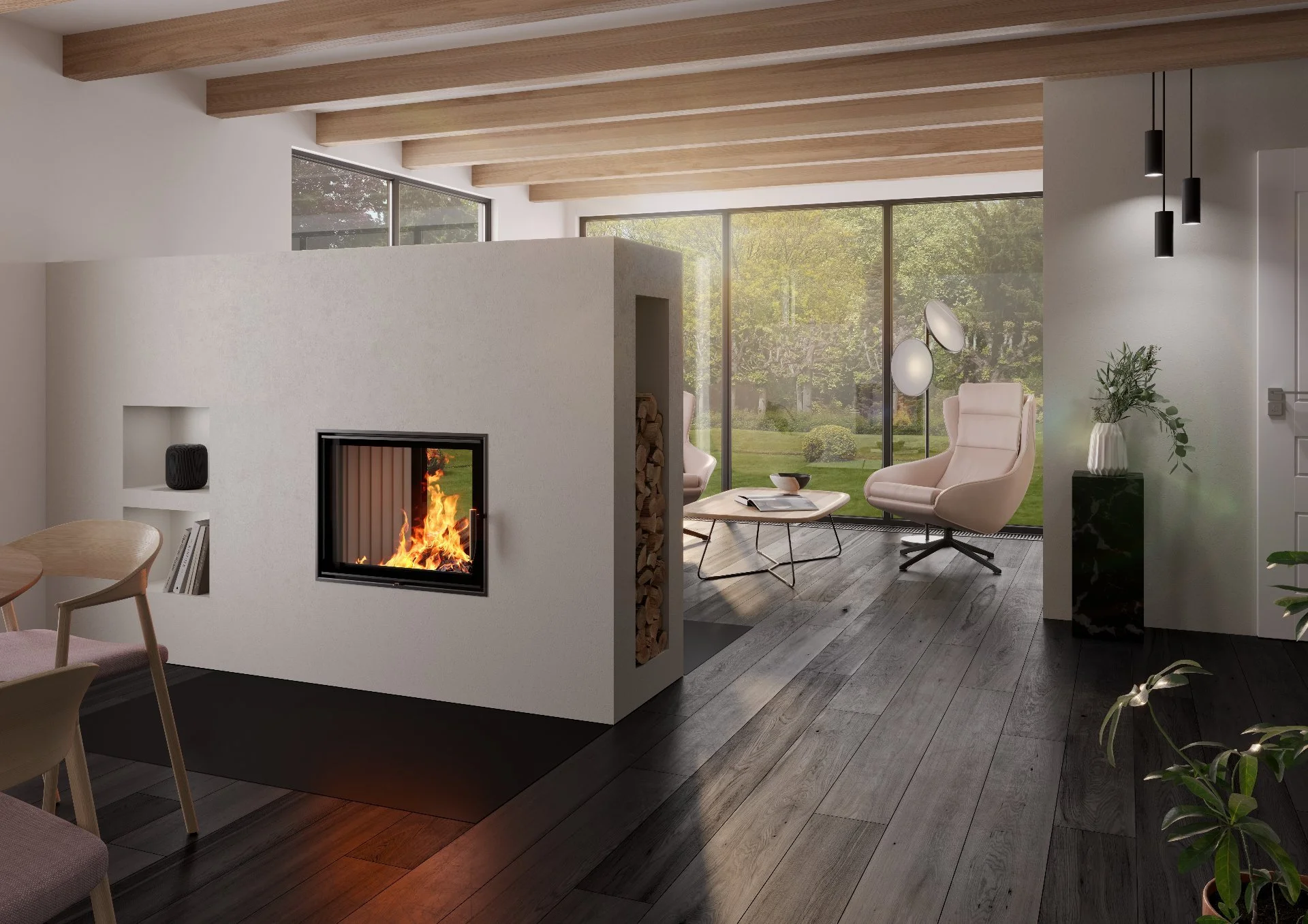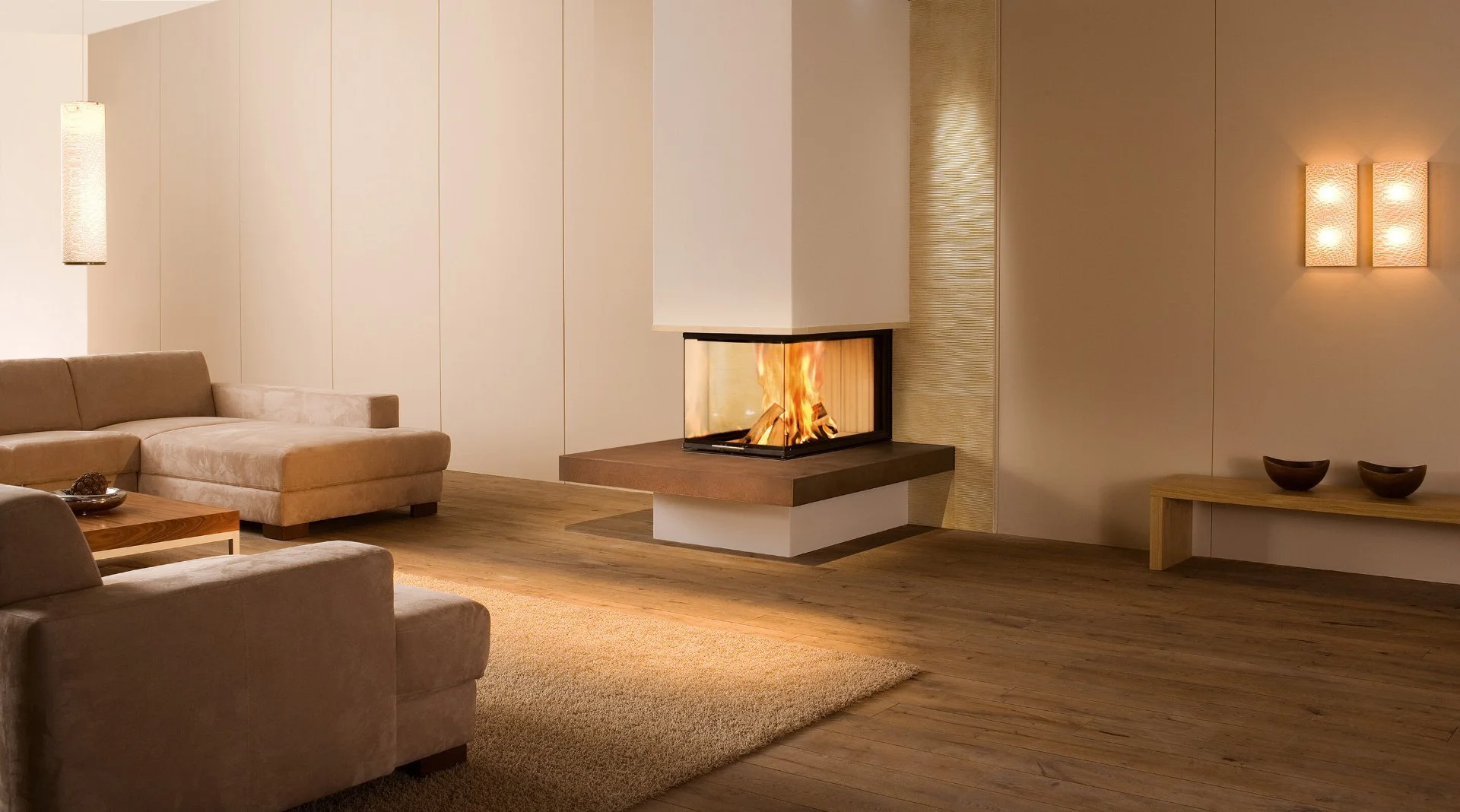 Modelle mit ein- oder zweiseitiger Sichtscheibe, flexibel in Wohnräumen einsetzbar.