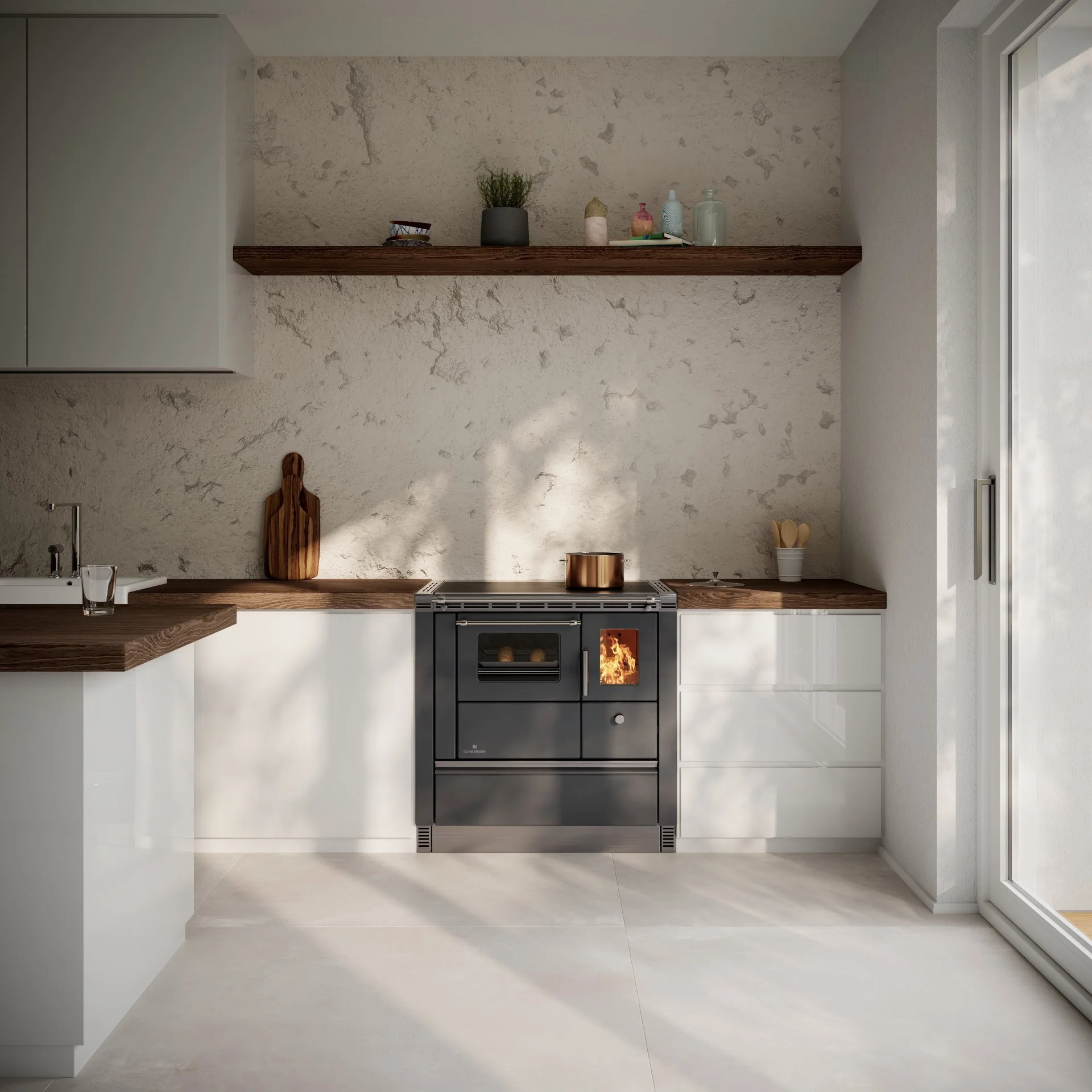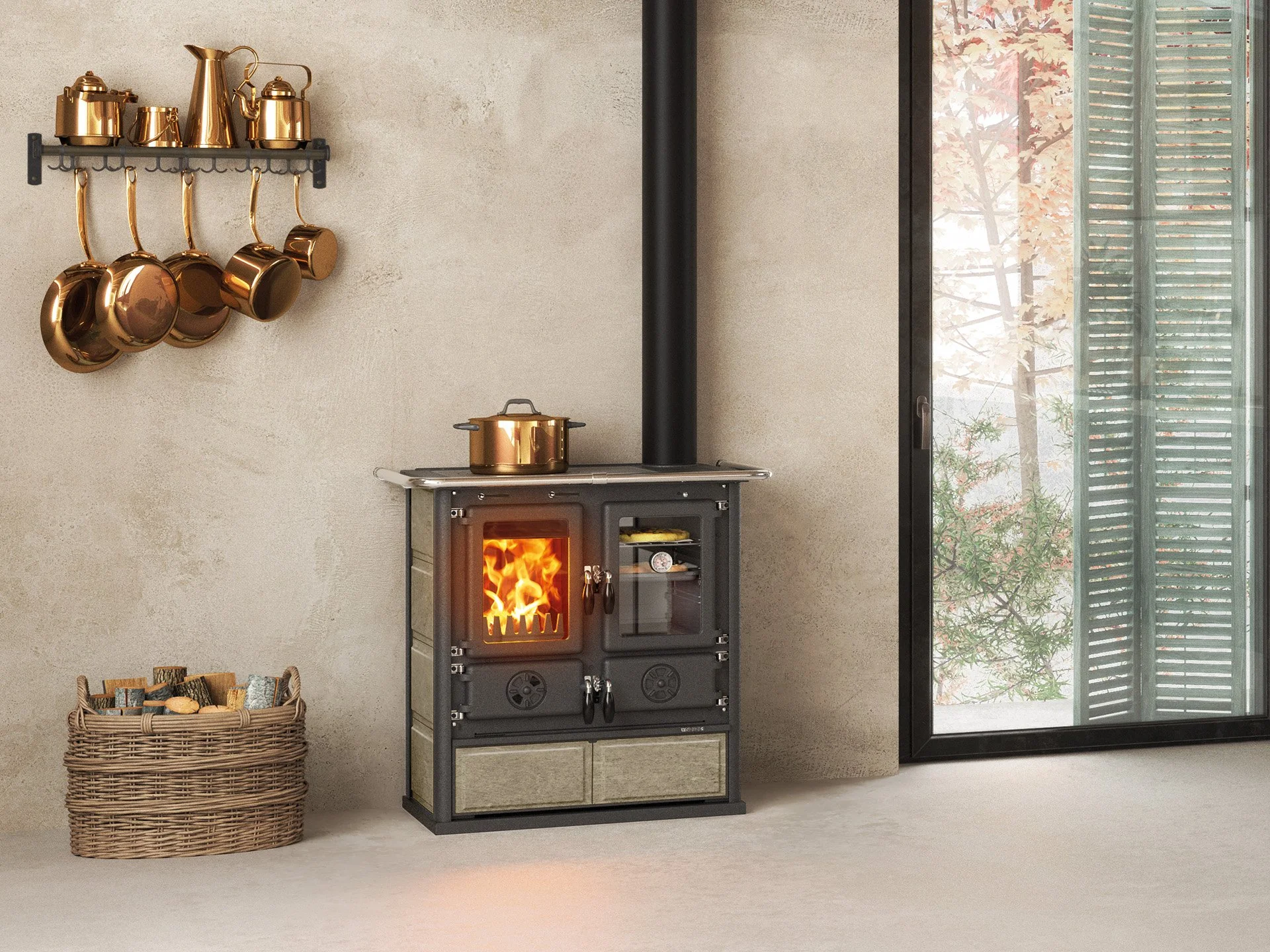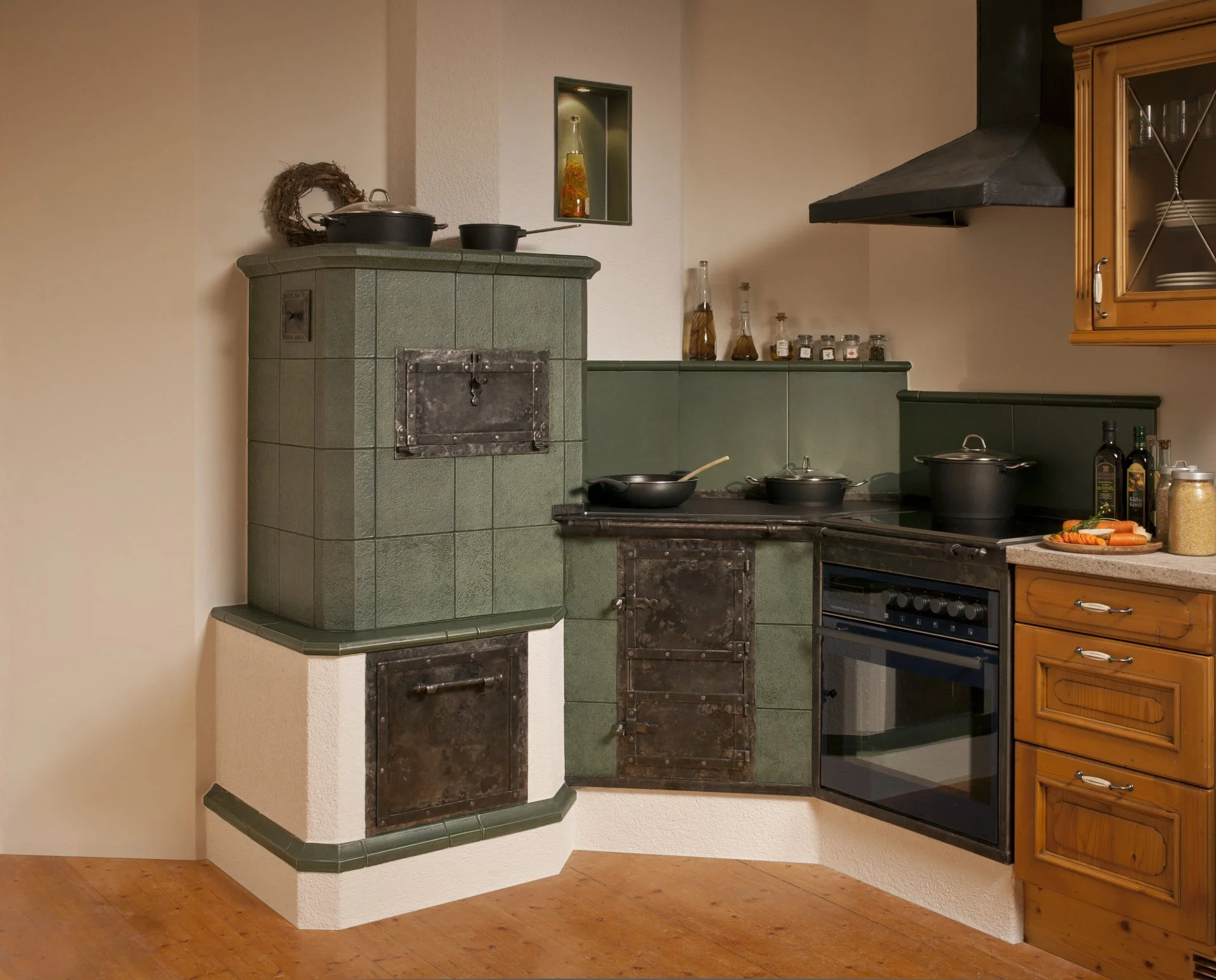 Kachelherde und Holzherde nutzen die Energie des Holzfeuers zum Kochen, Backen und zur Wärmeabgabe.